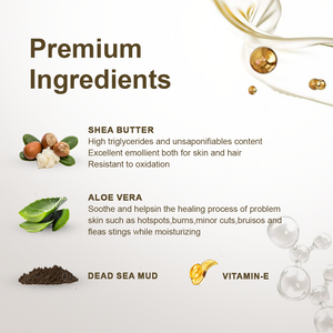 Vitamin E: Formulated with Vitamin E, a powerful antioxidant, to nourish and help protect your dog's skin from environmental damage and maintain its natural moisture balance, and promoting overall skin health and resilience.